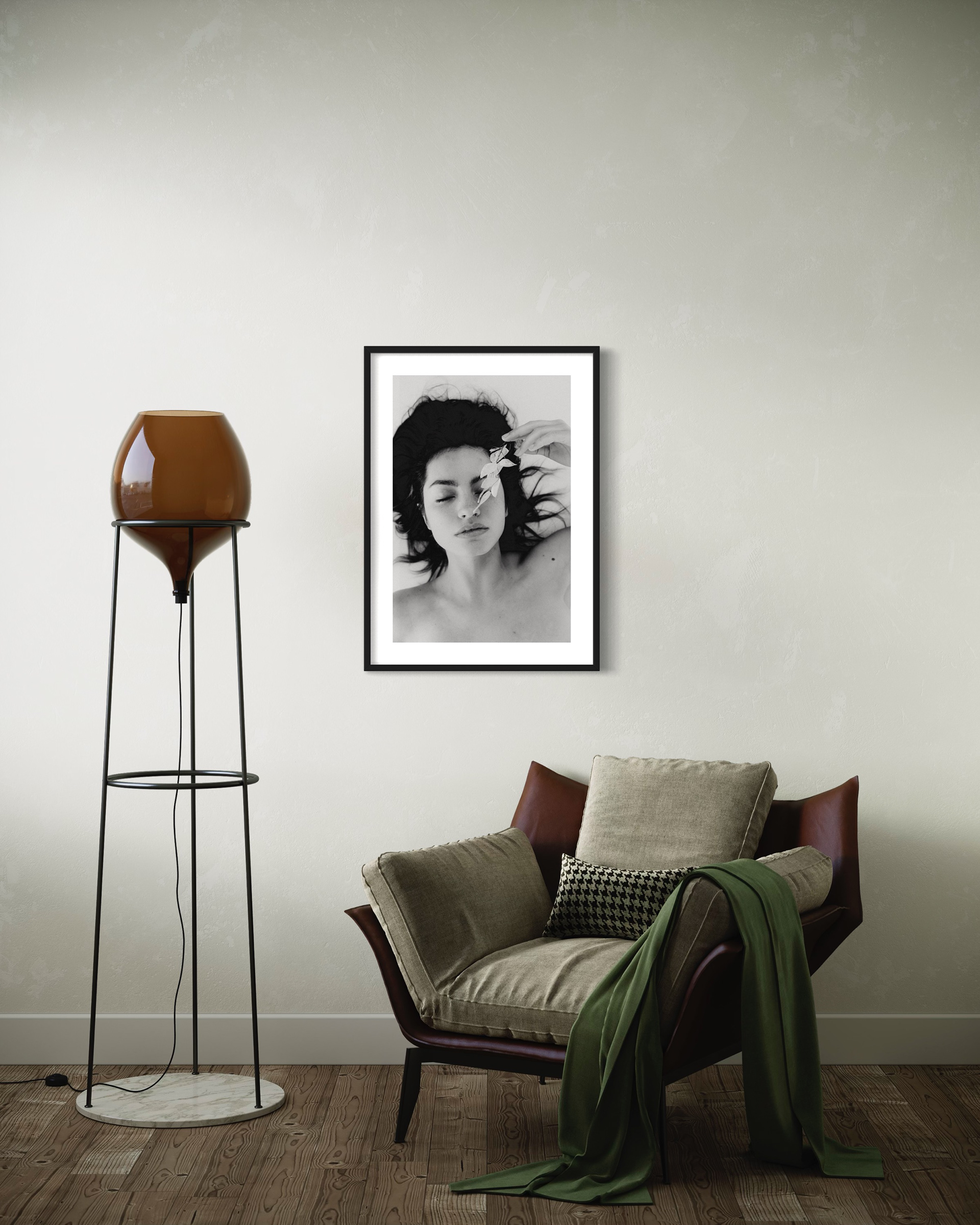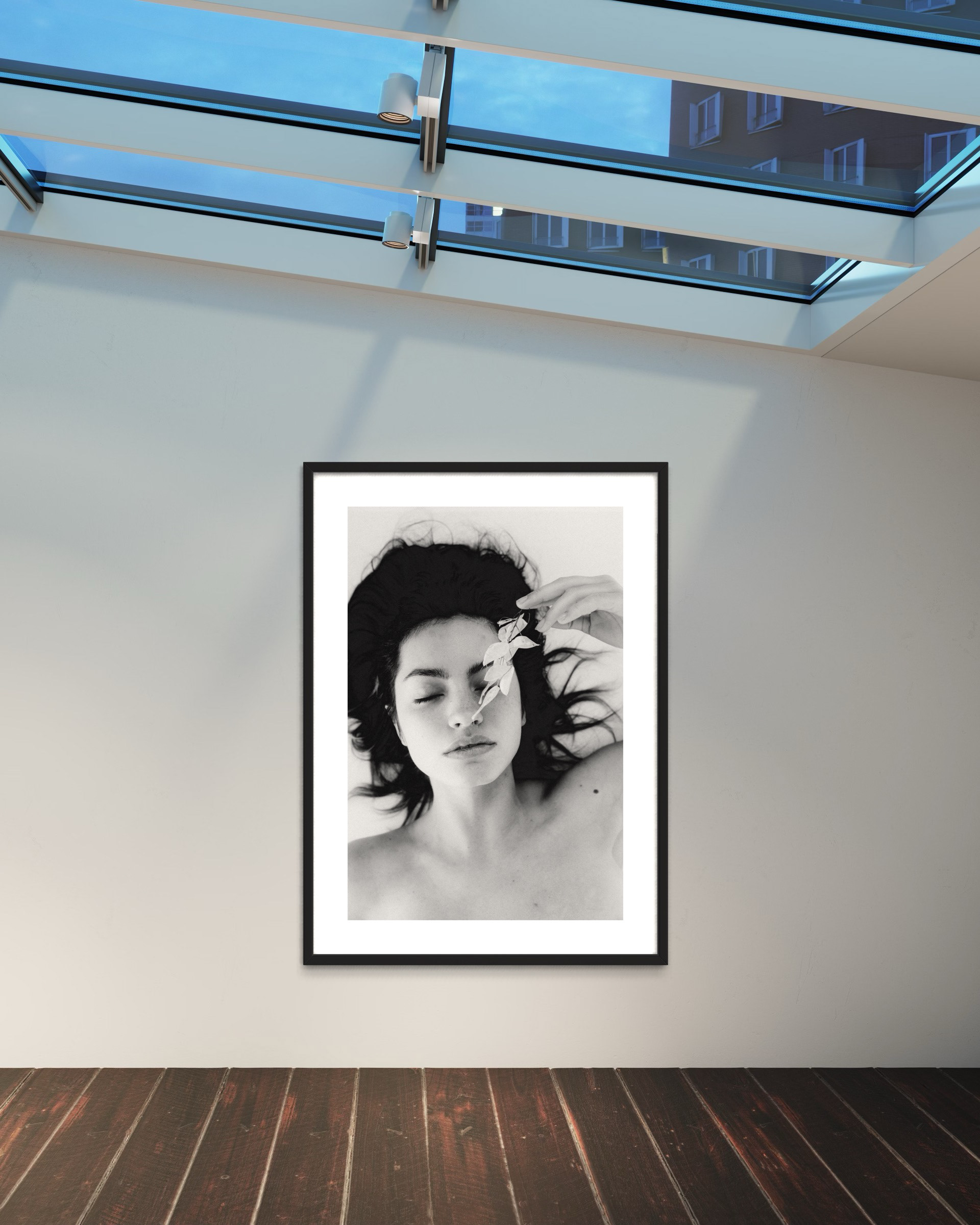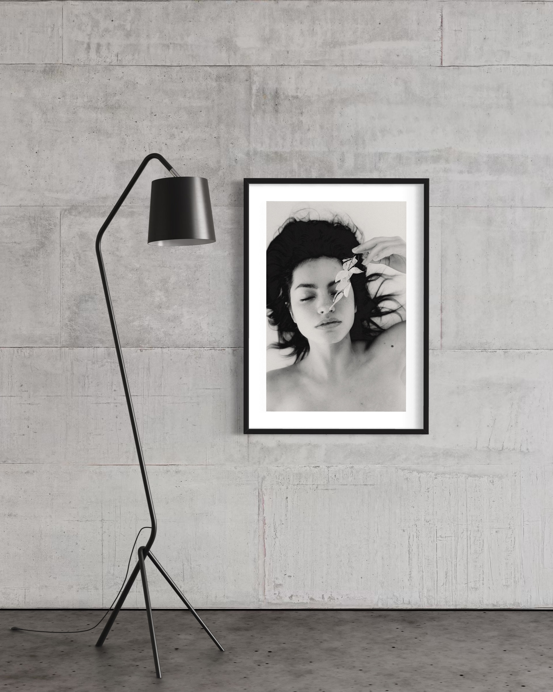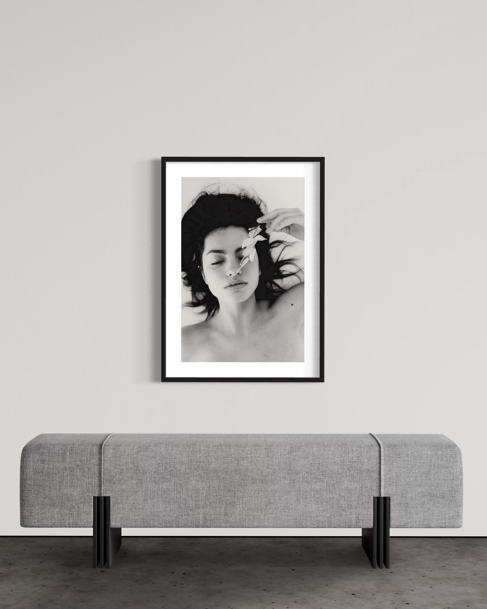 “Whispers in Contrast” captures a moment immortalized where light and shadow weave a delicate veil over the subtlety of the feminine, expressed with the clarity and brevity of a haiku. The leaves resting upon the figure convey a visual verse, a silence full of meaning within the minimalism of black and white. This composition, in its bare simplicity, is an invitation to ponder the silent elegance and the poetry of feminine subtleties.